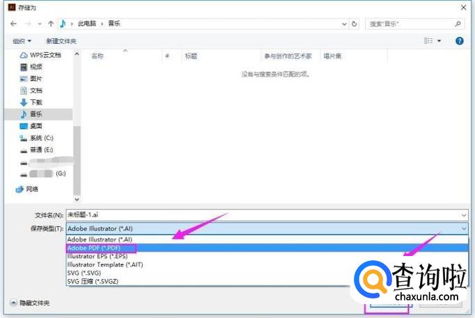 我们接着选择存储的格式,里面就有PDF的格式,如图。