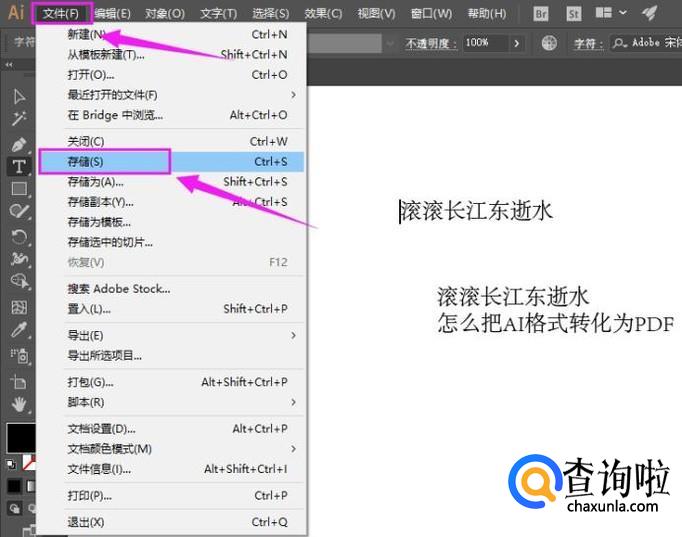 看到打开的文件,我们点击AI菜单栏上方的“文件——存储”,如图。