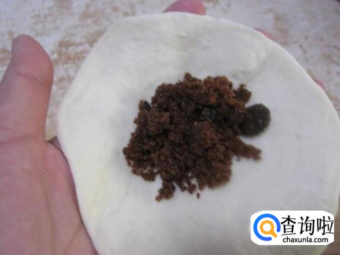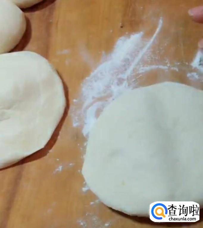 时间到了把面团放少量碱面加少许水再揉一均匀做成一个比以前大二倍多的面团,再把面团切成一个个大小差不多的小剂子,擀成厚点儿的皮,用来包馅。