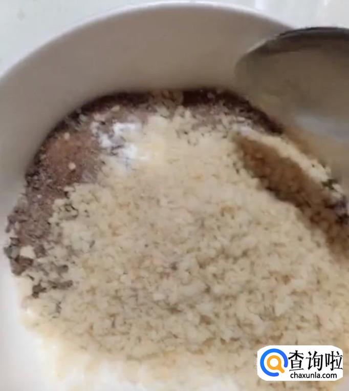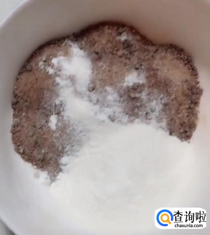 在等待面团发酵的时间,来准备糖三角的馅。取两份红糖,一份白糖,再加适量白芝麻搅拌一下,做成馅。