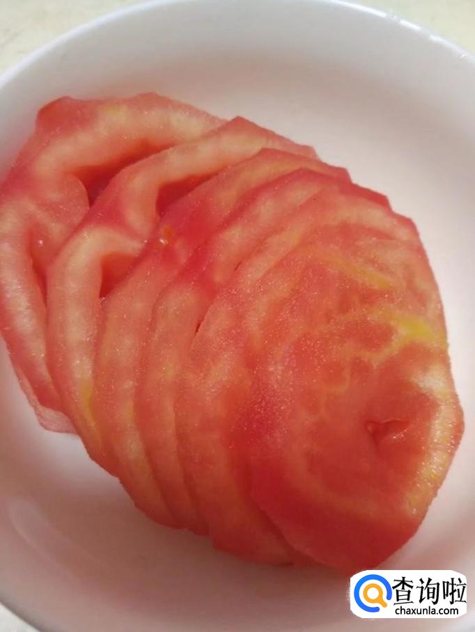 番茄去皮然后切片,准备好肉沫(因为用量较小,所以我直接在市场上购买的)