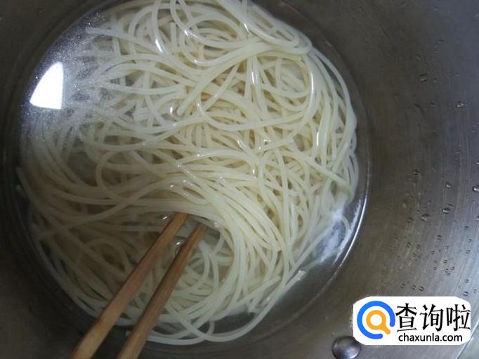 把意大利面从凉水中捞起来放入锅中进行翻炒