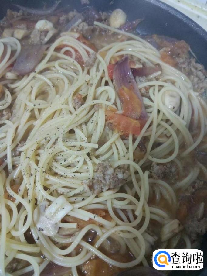 根据自己的口味进行调味后,一碗美味的番茄肉沫意大利面就做好了