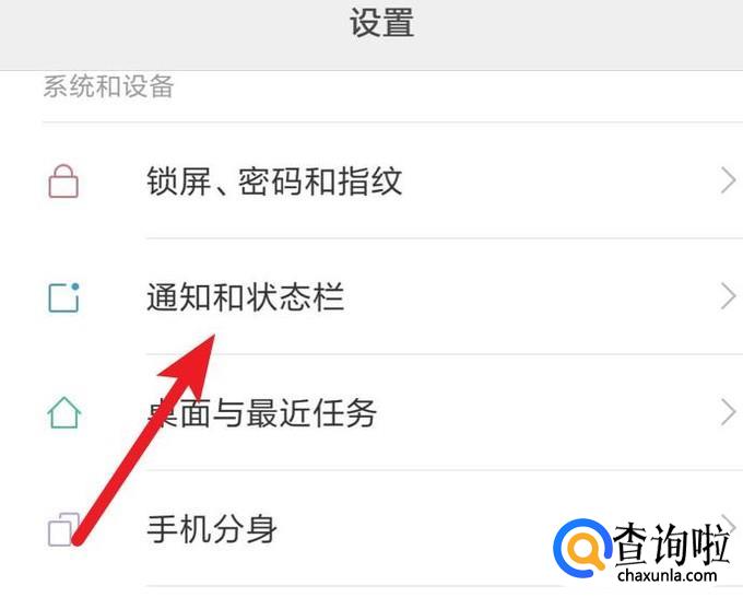 打开手机的设置页面,点击‘通知和状态栏’