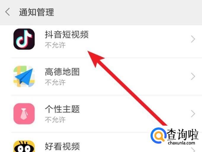 在这个应用列表里,找到你需要隐藏应用消息的应用,点击进入。