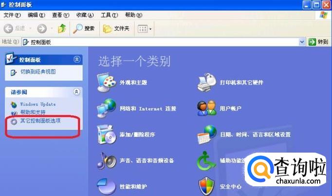 进入控制面板后,在左侧栏里找到“其他控制面板选项”,点击一下。