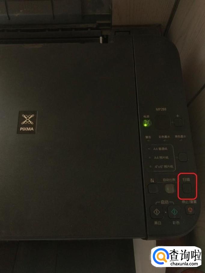 合上盖板就可以扫描了,按一下打印机右侧面板上的“扫描”按钮。