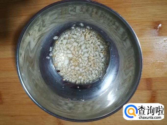 把蒜切成末,在油锅里炒香放碗里。