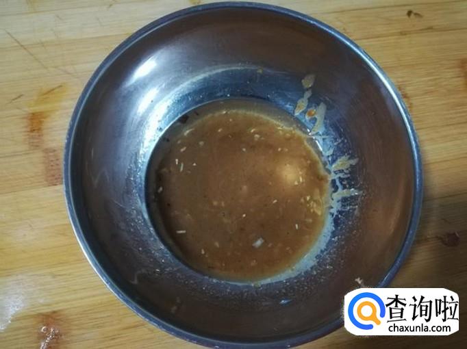 再给调菜盆里倒入做好的调味酱,搅拌均匀盛入盘子里。