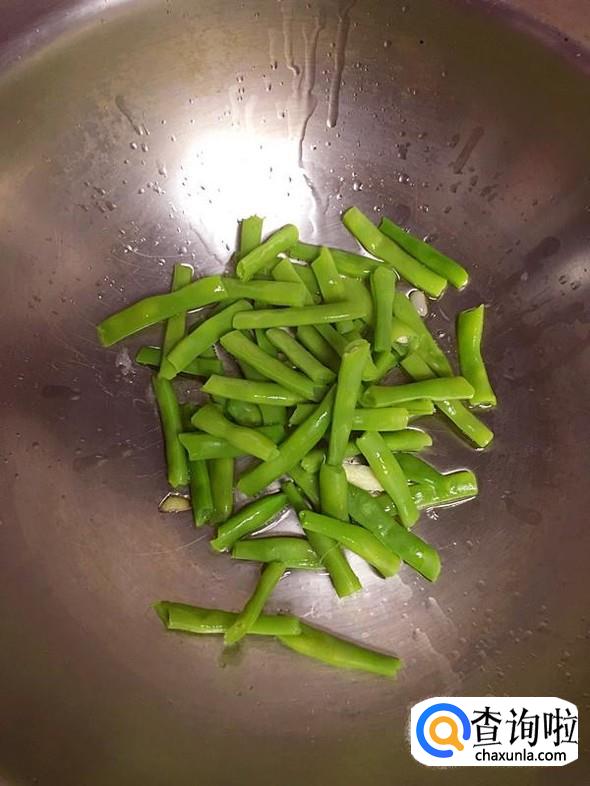 豆角掐去两头,摘洗干净,沥干水分放入盘中待用。