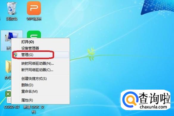 首先,我们右键点击“计算机”,如图所示,点击“管理”。
