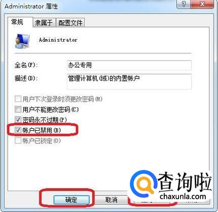 如图所示,把图中“账户已禁用”复选框前面的对勾去掉,点击应用,确定。此时,就可以登录管理员账户了。按键盘上的"Win"+"L"键,这时就可以看到管理员帐户。