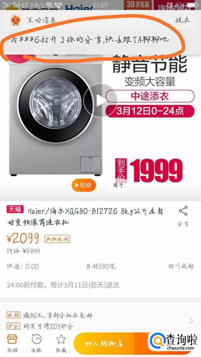 如果好友已经查看了你的分享,你的淘宝里面就会出现相应的提示