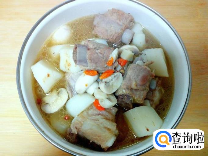 山药 500克,排骨 750克,口蘑 5个,枸杞 适量。
