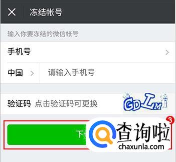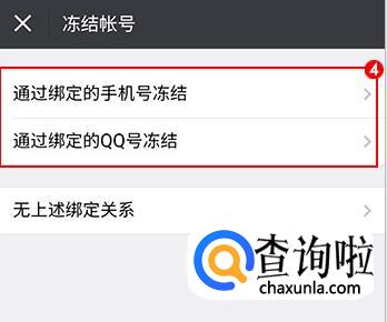 在新界面通过微信绑定的手机号或者QQ号来进行冻结,如下图所示。