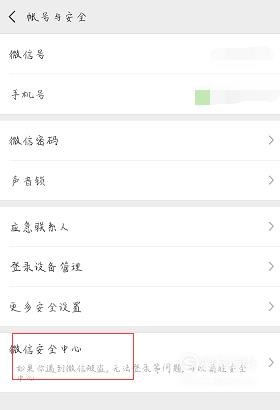 在弹出的新界面里点击最下面的“微信安全中心”,如下图所示。