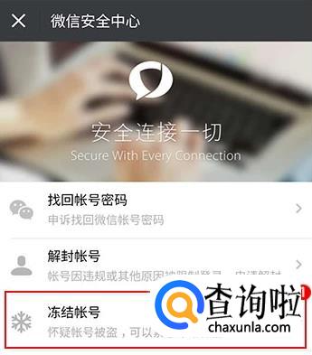 在微信安全中心选择“冻结账号”,如下图所示。