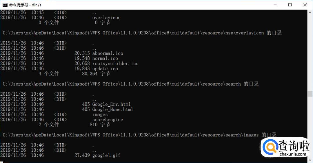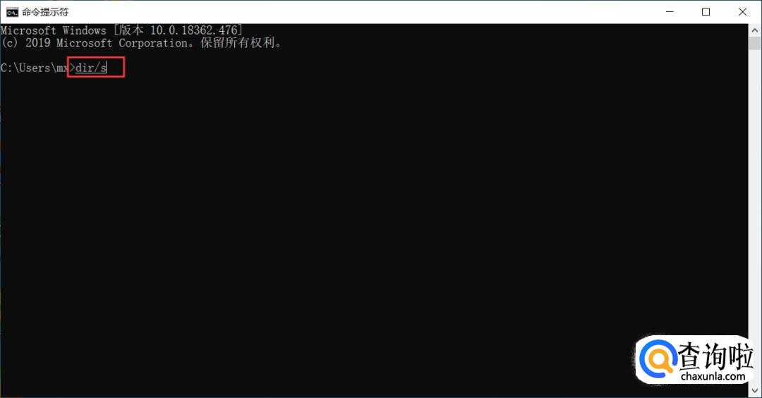 注意了,此时你需要做的就是在弹出来的界面中输入【dir/s】即可,点击回车,其他多余的动作都不需要做。