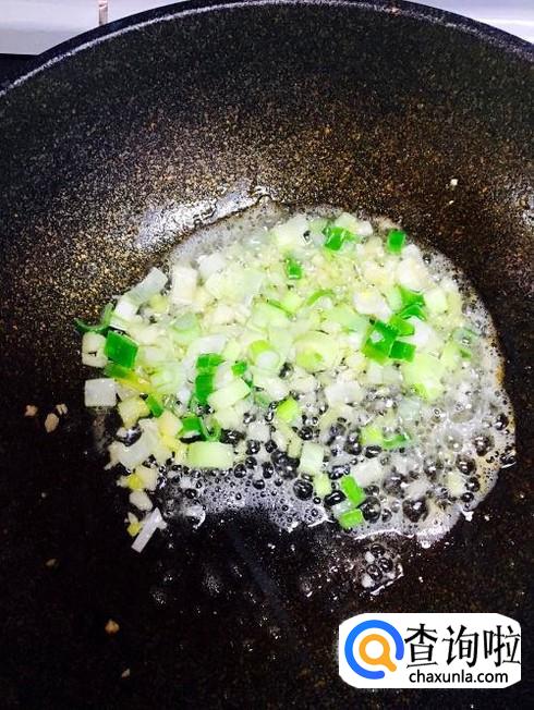 西红柿切成丁,葱姜蒜全部切成末,锅里倒油,把葱姜蒜全部放进锅里翻炒,要不断翻炒,然后加上红辣椒圈,以及洋葱碎翻炒。