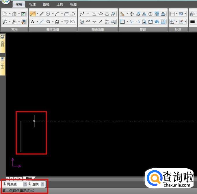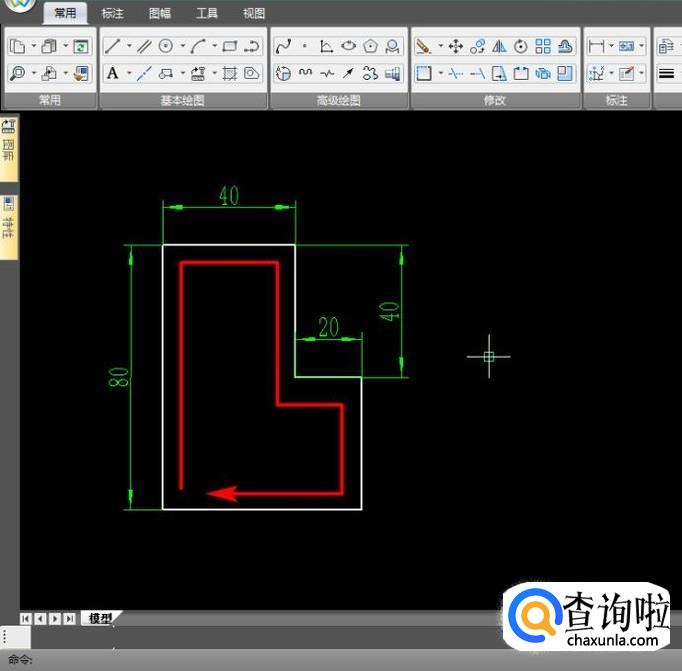 再向右绘制长40mm的直线,依照图中尺寸顺时针绘制出一个封闭的L型;
