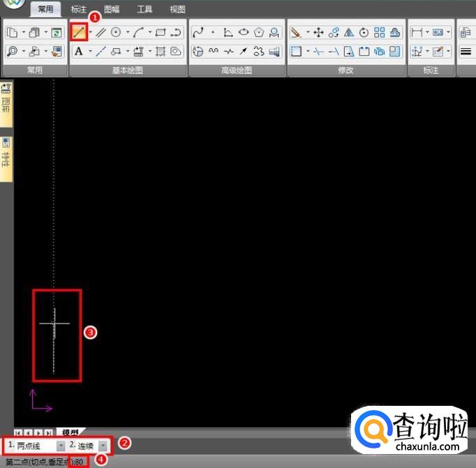 调整图层为粗实线层,使用直线命令,选取图纸中一点开始绘制门框,先向上绘制80mm的直线;