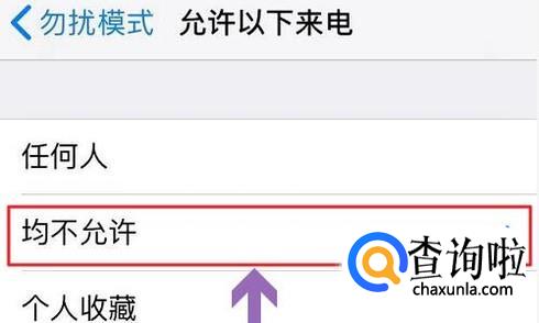 如果不想任何人来电打扰,那么我们可以切换到“均不允许”,如果我们之前对联系人有过群组设置,那么也可以将个人收藏切换为群组中的某一个分组;