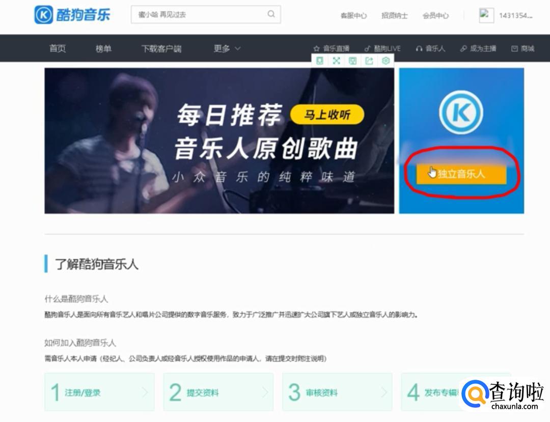 点击“酷狗音乐人 酷狗网”进入界面,点击“独立音乐人”。