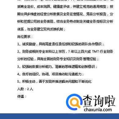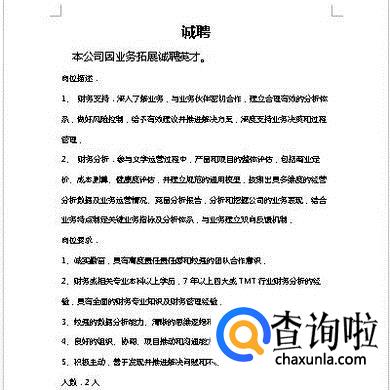 接着,进行诚聘人数以及待遇描述。最后,写上面试地址、联系人以及联系电话。