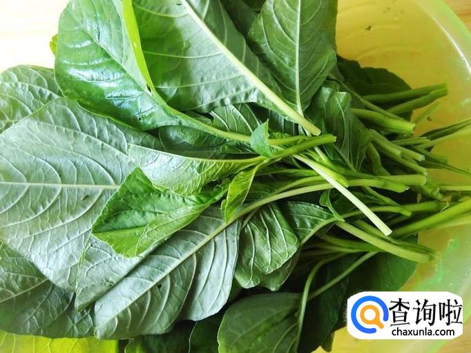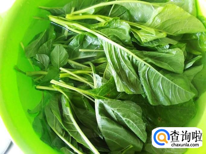 把苋菜的嫩叶摘下来洗干净。