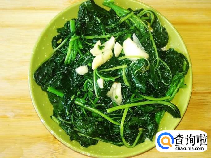 热锅下油,放蒜米进去爆香,然后放苋菜进去。