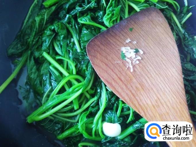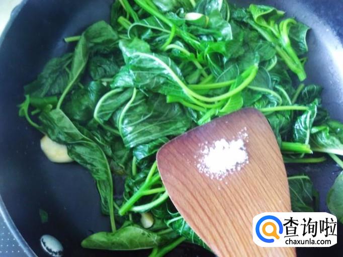 大火翻炒至软,然后加适量的盐翻炒一下。