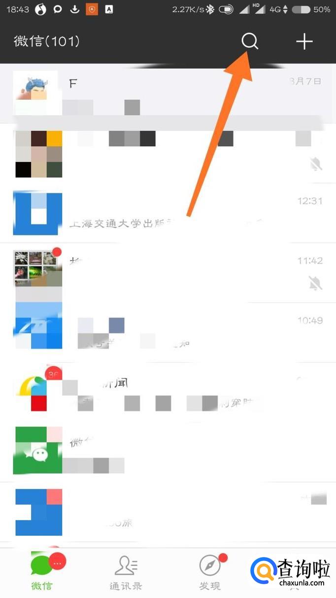 首先打开微信,点击上方的搜索图标,在输入框里面输入“王卡助手”。