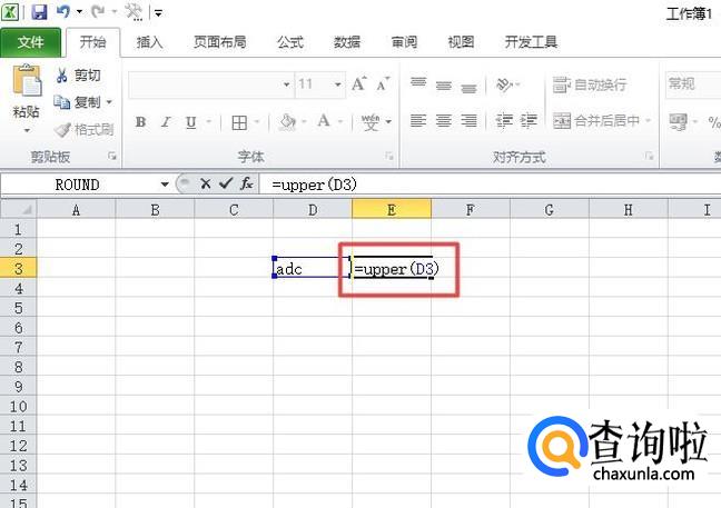 然后我们在里面输入=upper(D3),之后我们按回车键;