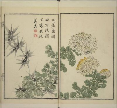 梅、兰、竹、菊成为中国人感物喻志的象征,也是咏物诗和文人画中最常见的题材,正是根源于对这种审美人格境界的神往,也是咏物诗文和艺人字画中常见的题材,号称花中四君子。