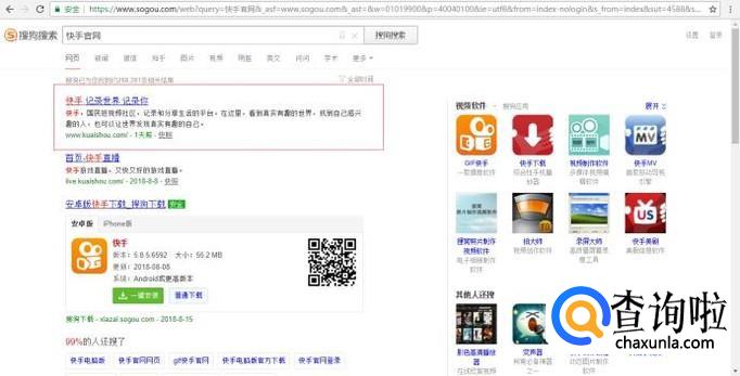 首先,打开搜狗浏览器,搜索“快手官网”。