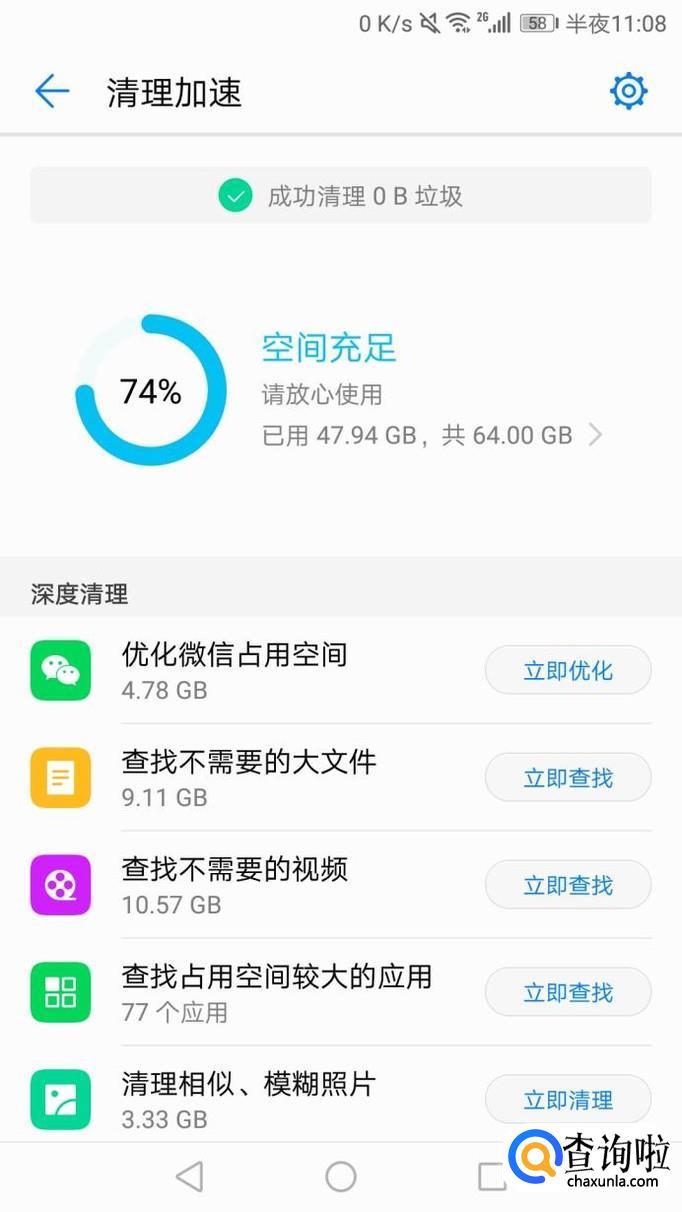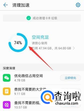 点击“清理加速”后,系统开始扫描,清理手机垃圾。