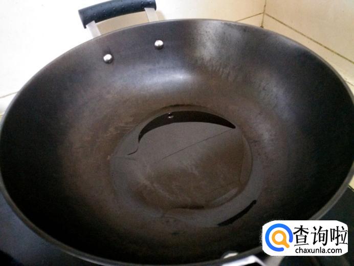 然后再打开小火热锅,等锅热了以后,倒入少许油。