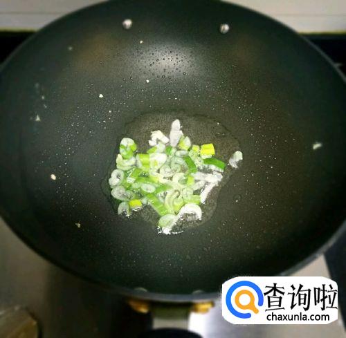 油热以后,放入葱花,翻炒爆香,葱花慢慢变色时倒入酱油,再倒入适量水。