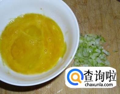 首先,我们把葱洗净切成葱末,把两个鸡蛋打到碗里,搅匀放置备用。