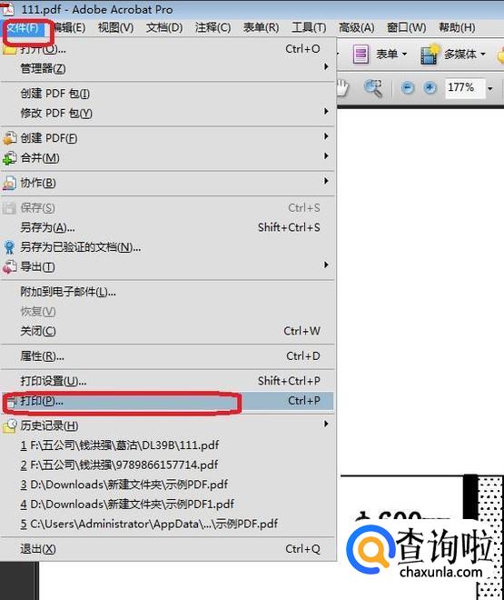 这样,我们就得到了PDF格式的图形, 打开PDF,直接点击“文件”、“打印”就可以了,因为都设置好了,所以看一下右侧的预览效果没问题,直接确定就出图了。