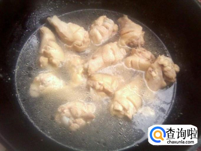 首先我们要先把从超市买回来的鸡腿冲洗干净,然后放入锅中去除浮沫,为了去除腥味我们可以放一些姜片和料酒。