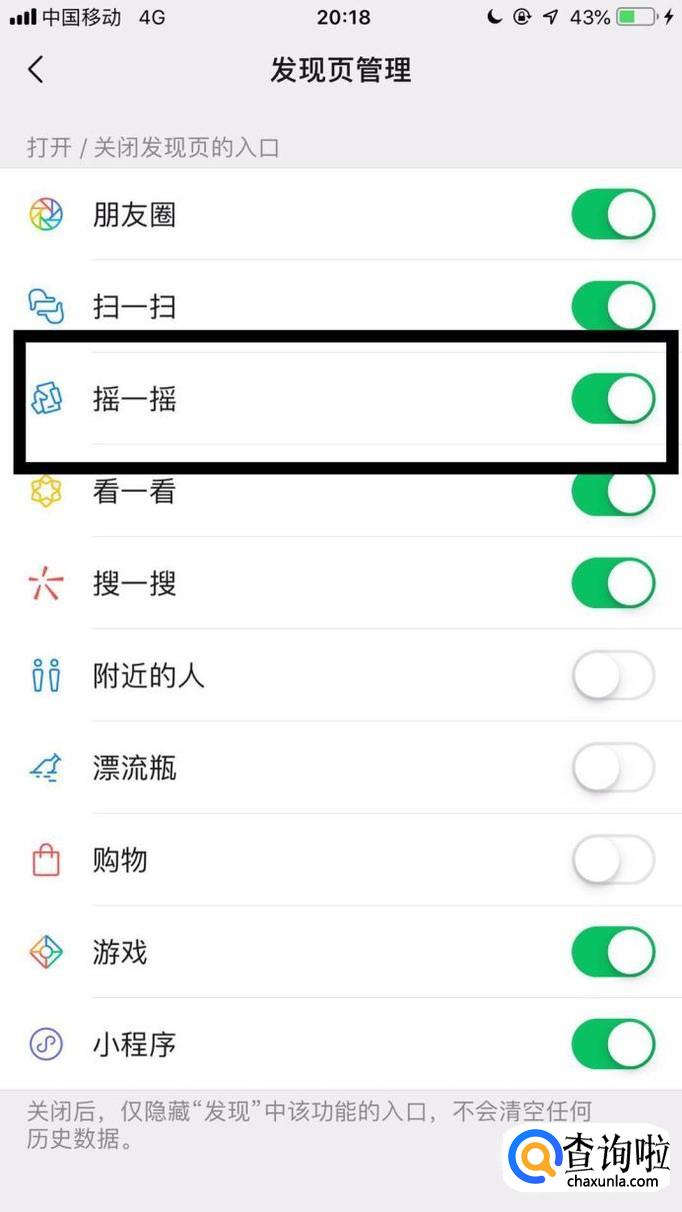 接着点击开启摇一摇开关。