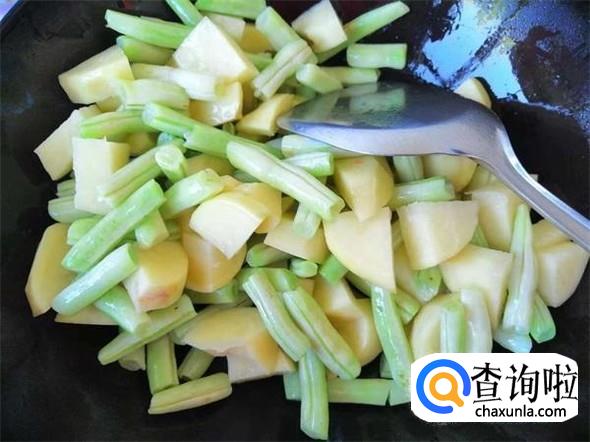 等到我们看到锅中的土豆呈现出金黄色的时候,一般就是炒的差不多的时候了,这时候如果大家不确定是否已经熟了,可以用筷子夹一块儿土豆和芸豆尝一尝。