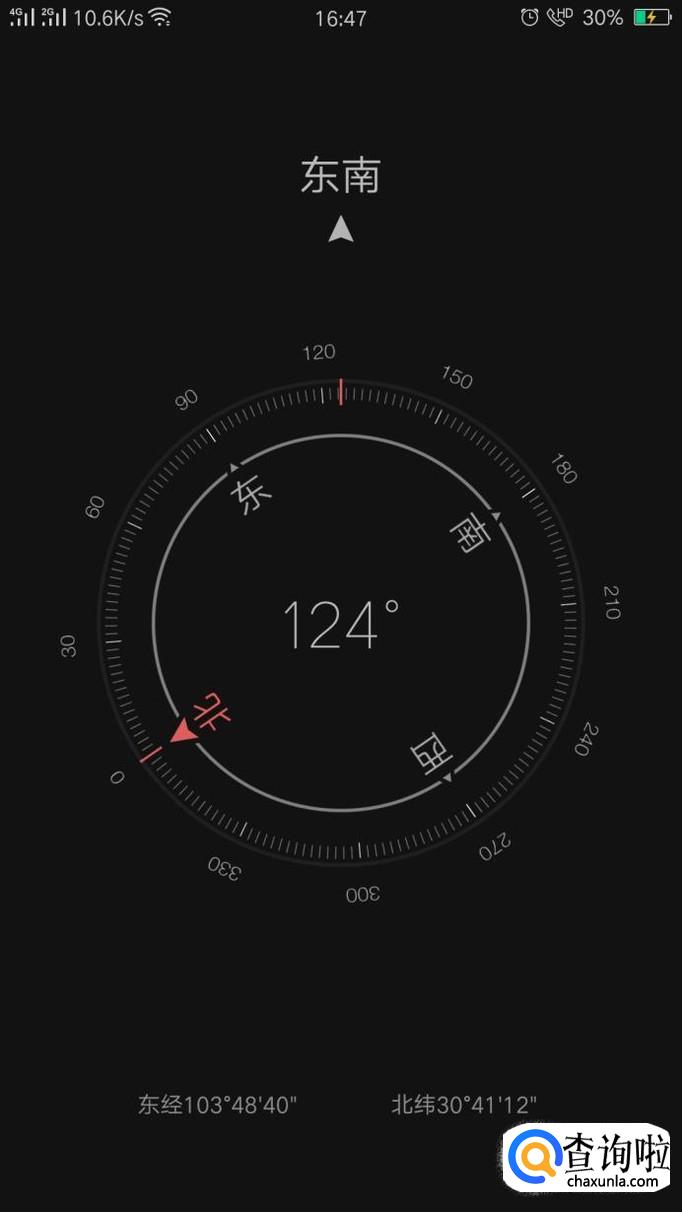 可以看到屏幕下方出现了精准的纬度以及方向。
