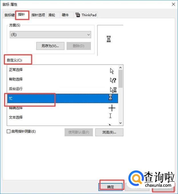 弹出的界面,我们点击指针,之后我们就可以看到自定义了,我们选择其中一个,然后点击应用,之后点击确定就可以了。