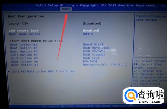 解决方法:进入bios以后,找到上面的BOOT选项。
