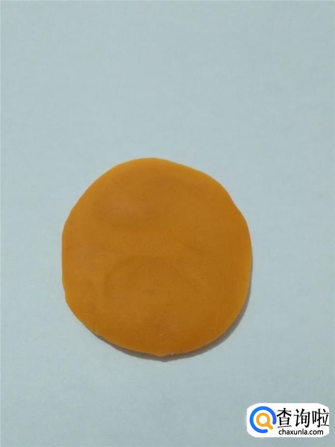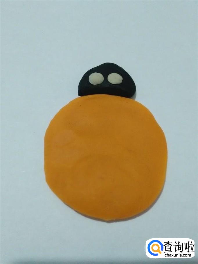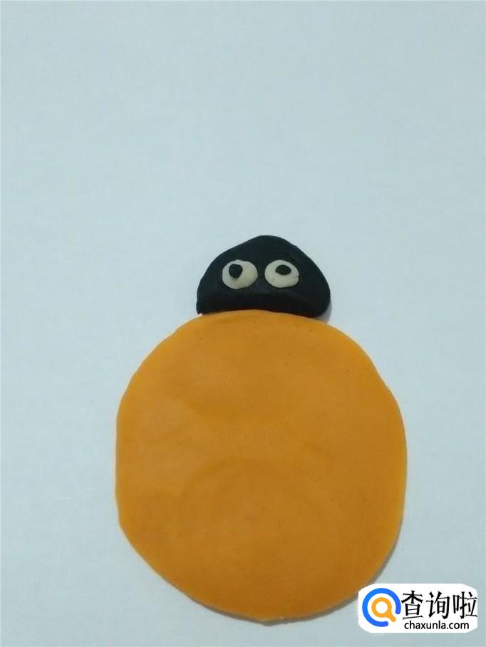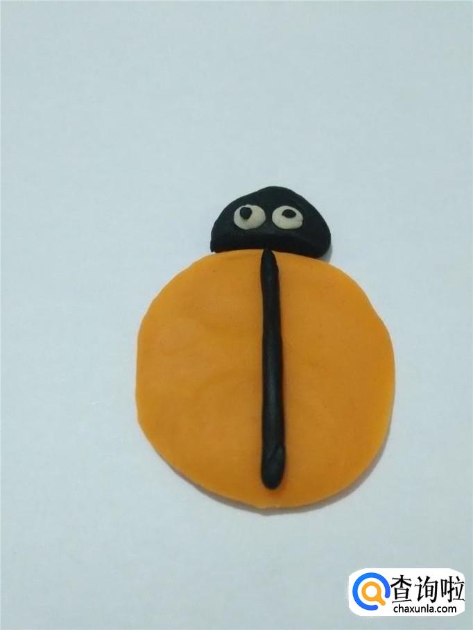 用桔黄色先团一个圆球,再按成扁片,当作瓢虫的身体。