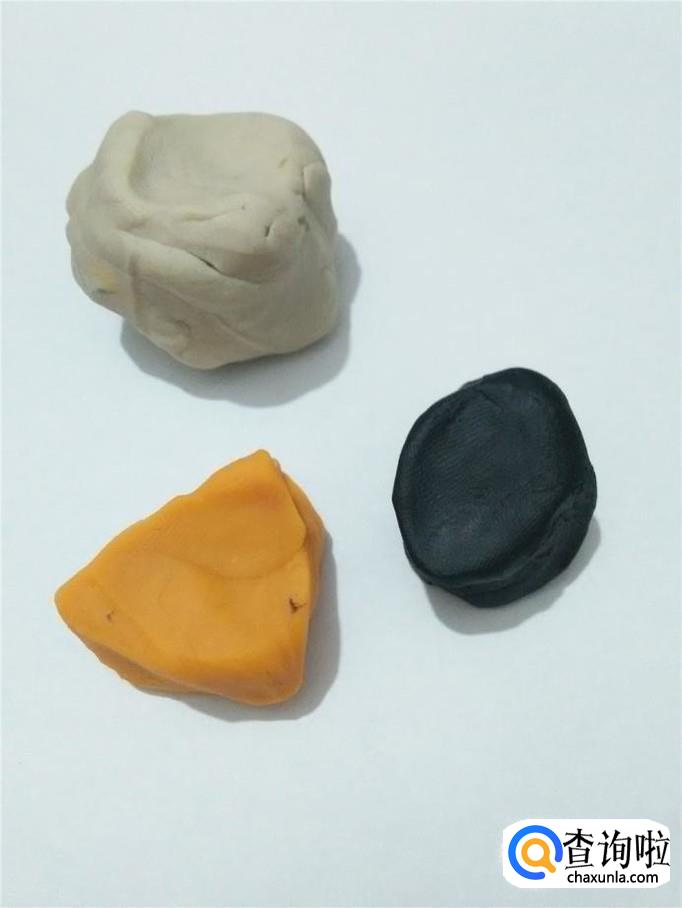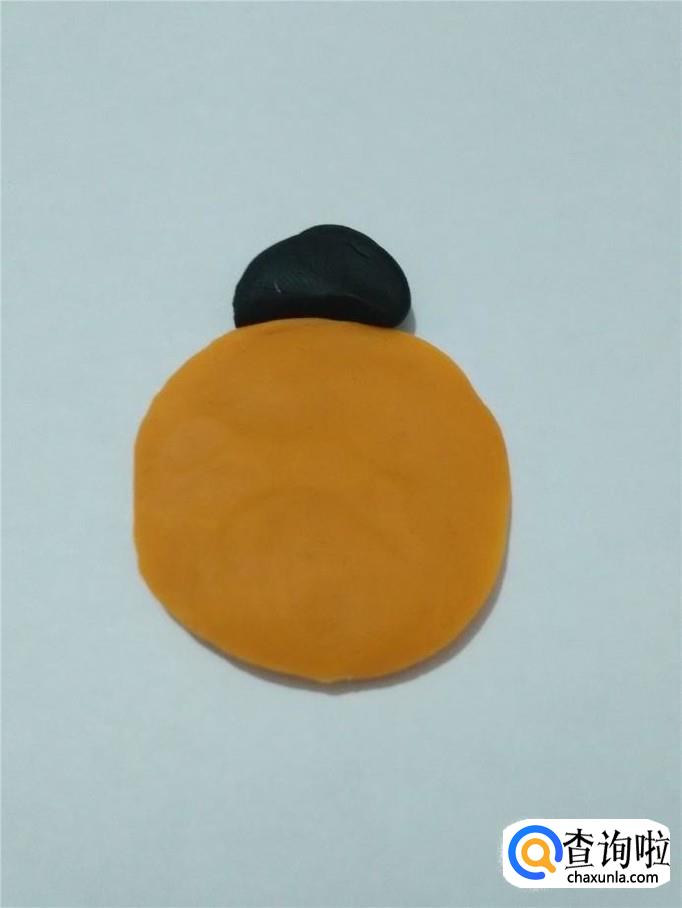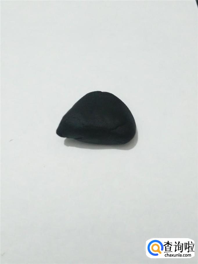 再用黑色捏一个半圆形,粘在身体上方,当作头。