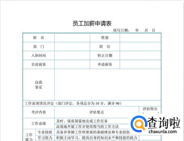 根据加薪申请表,填写你个人的基础信息