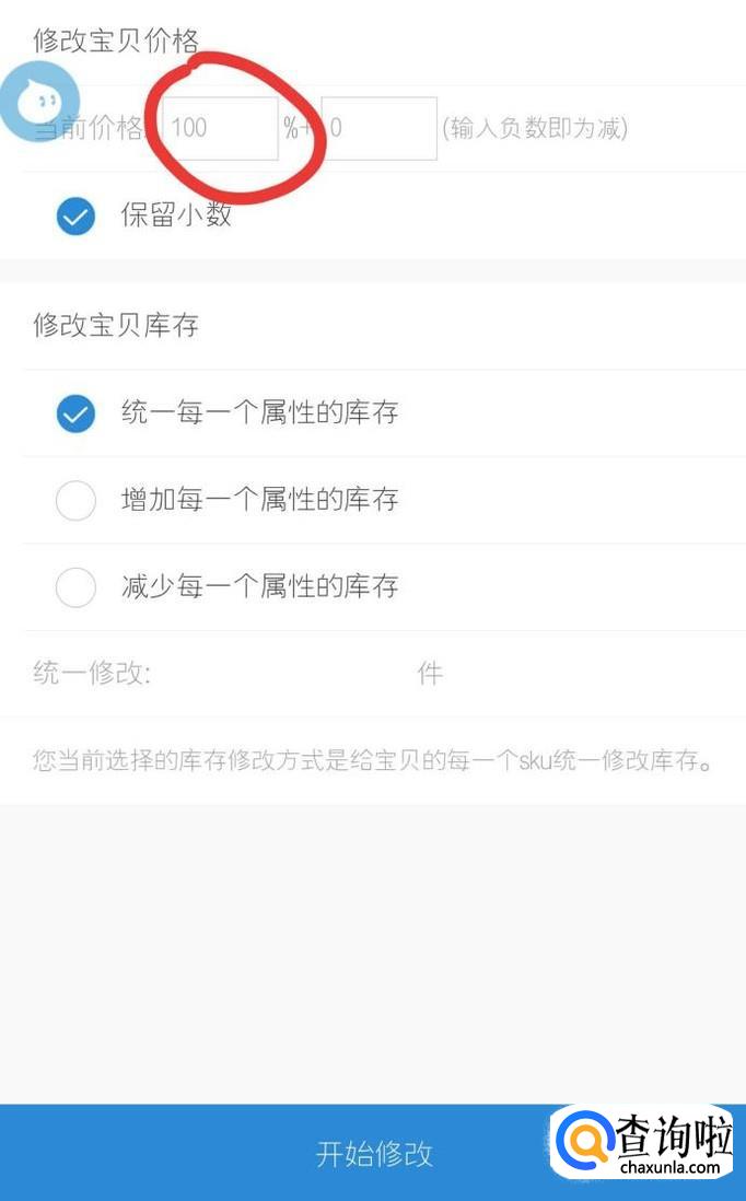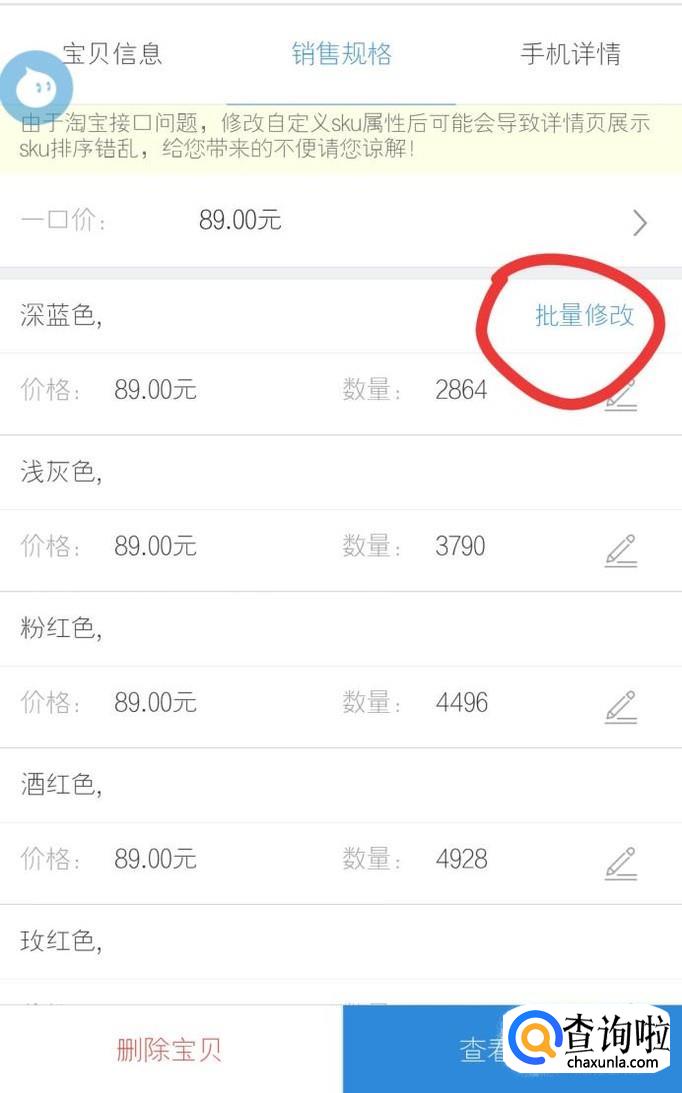 在商品信箱中找到销售规格中的批量修改。
